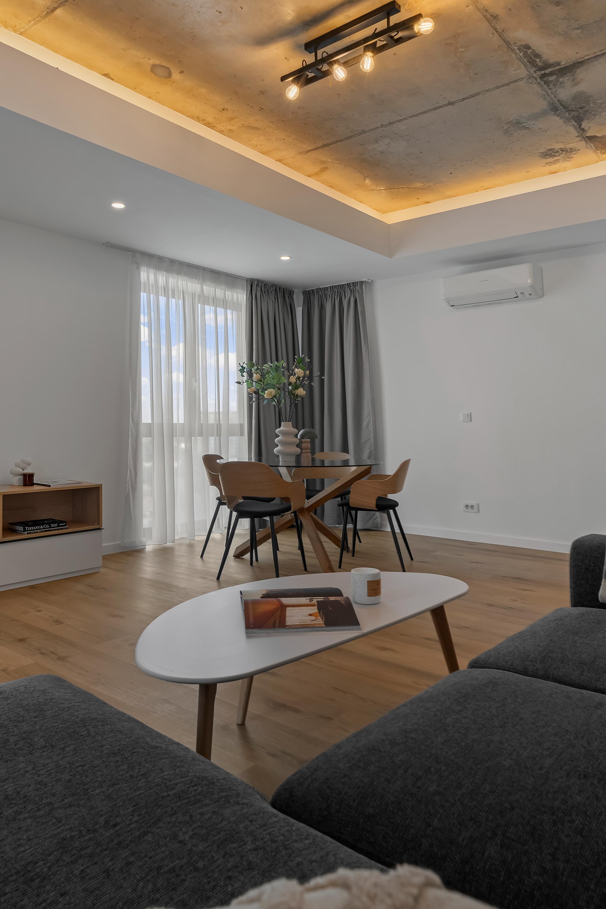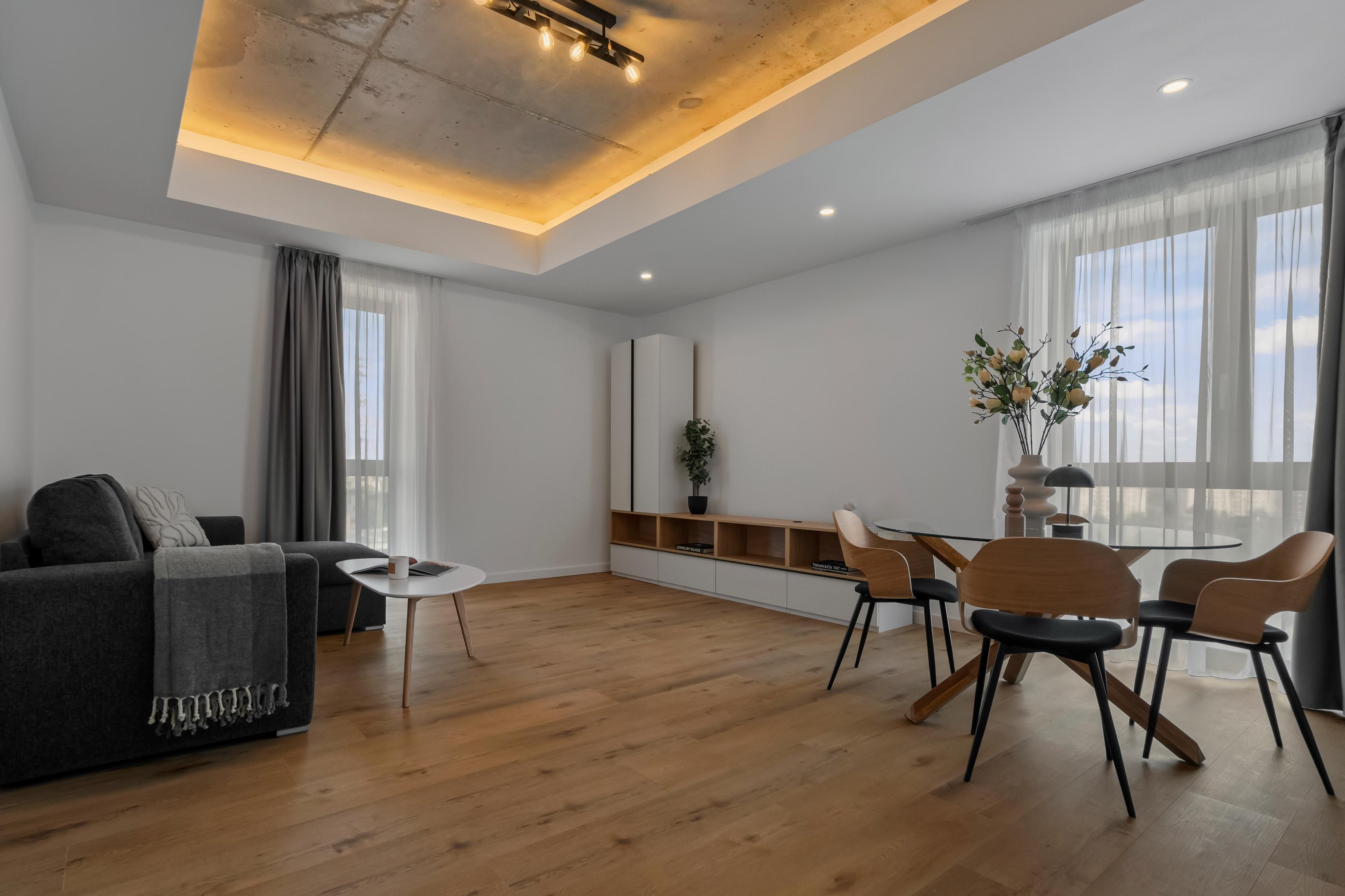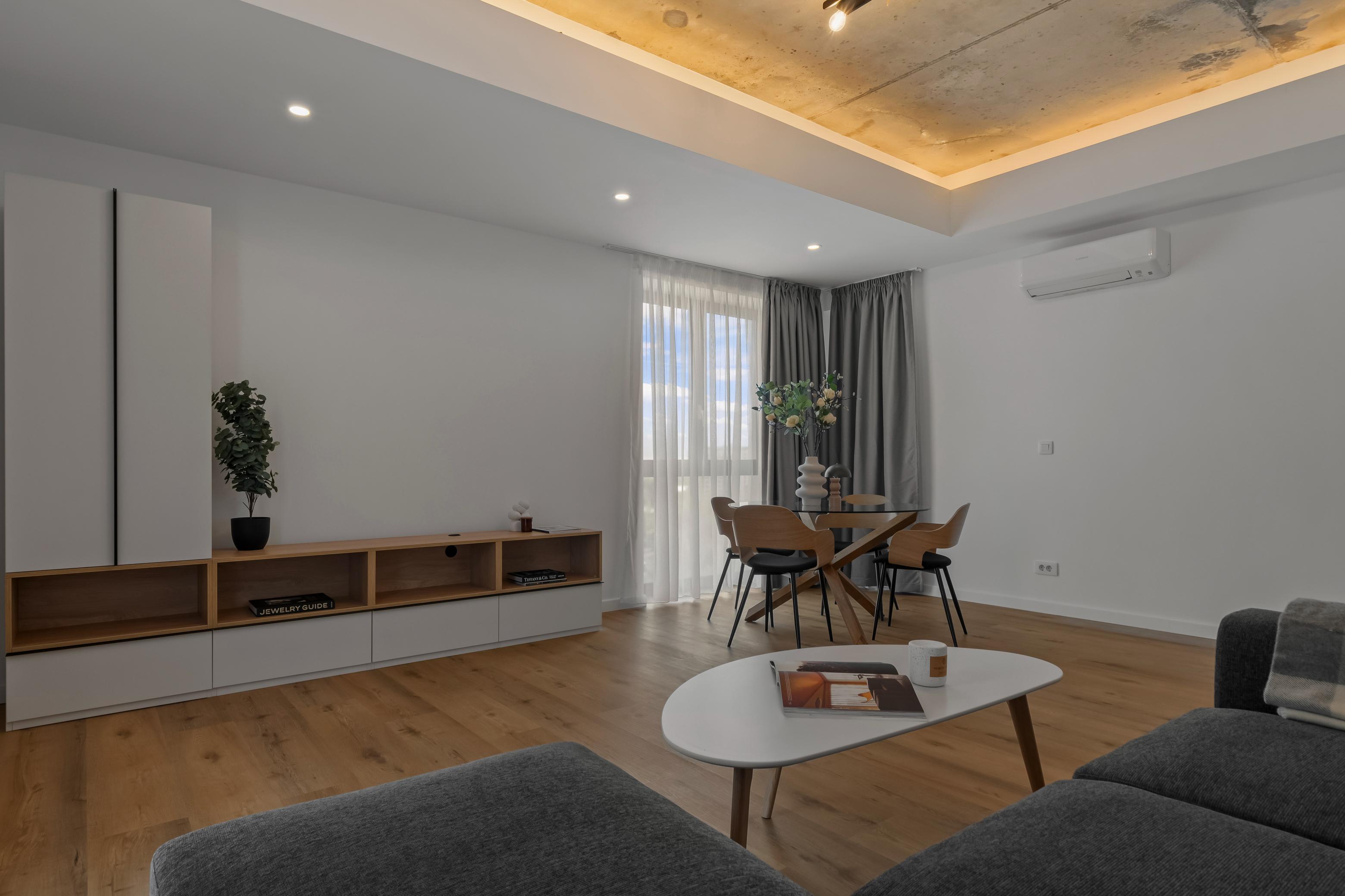 Living, dormitor, birou, 1 baie, 1 grup sanitar, bucătărie deschisăSuprafață utilă 85.4 mp + balcon