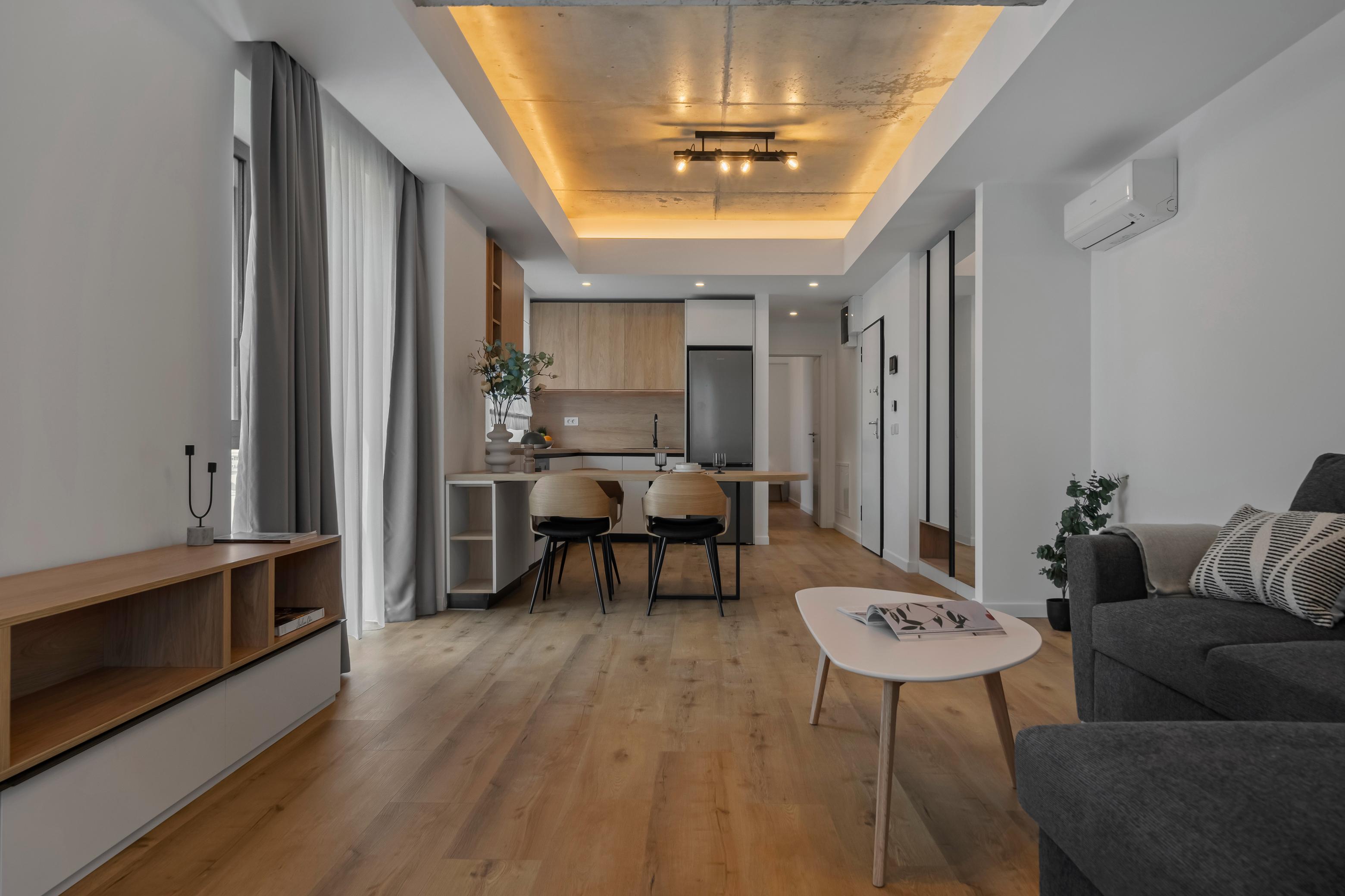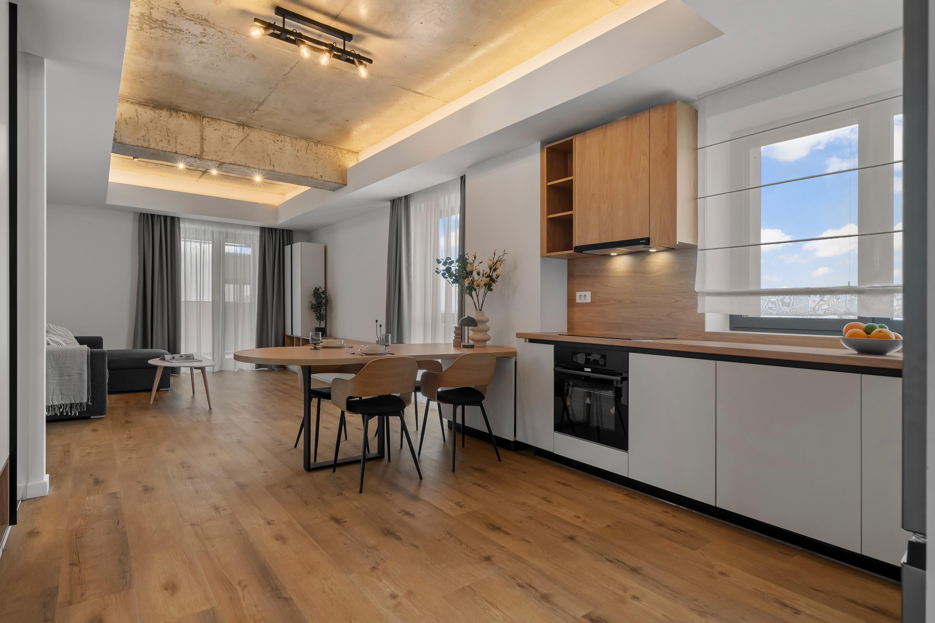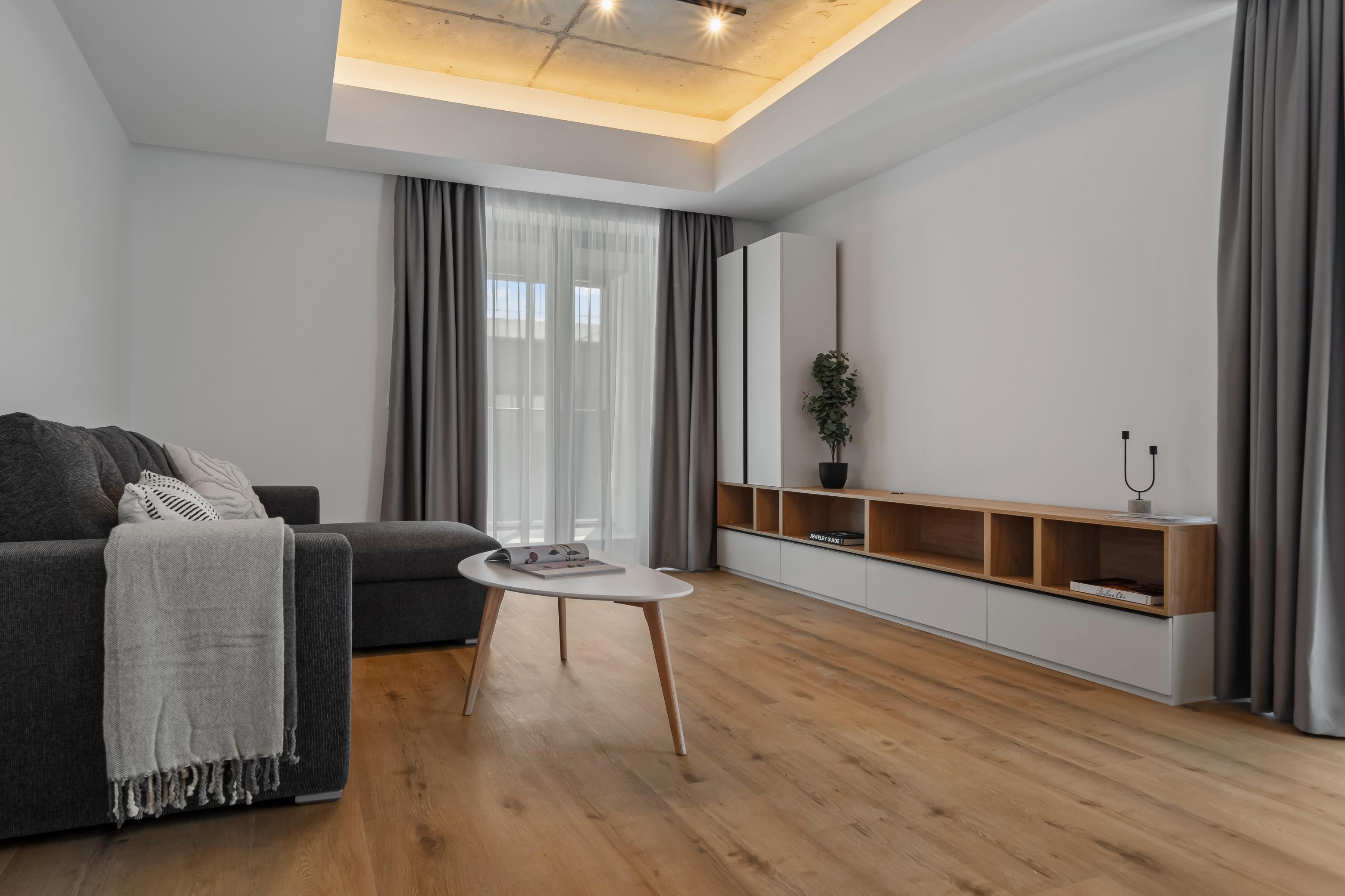 Living, dormitor, baie, bucătărie deschisăSuprafață utilă 57 mp + balcon