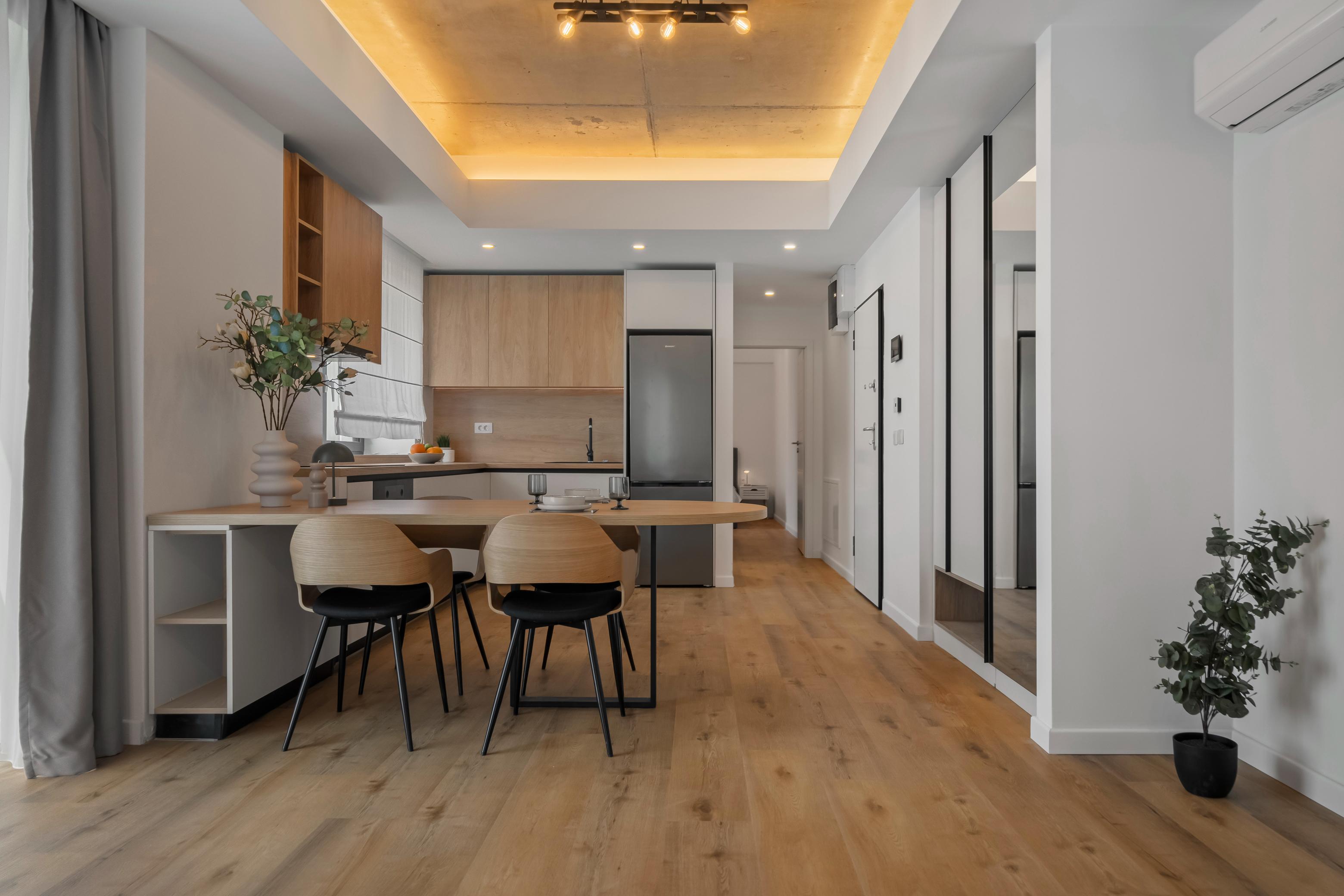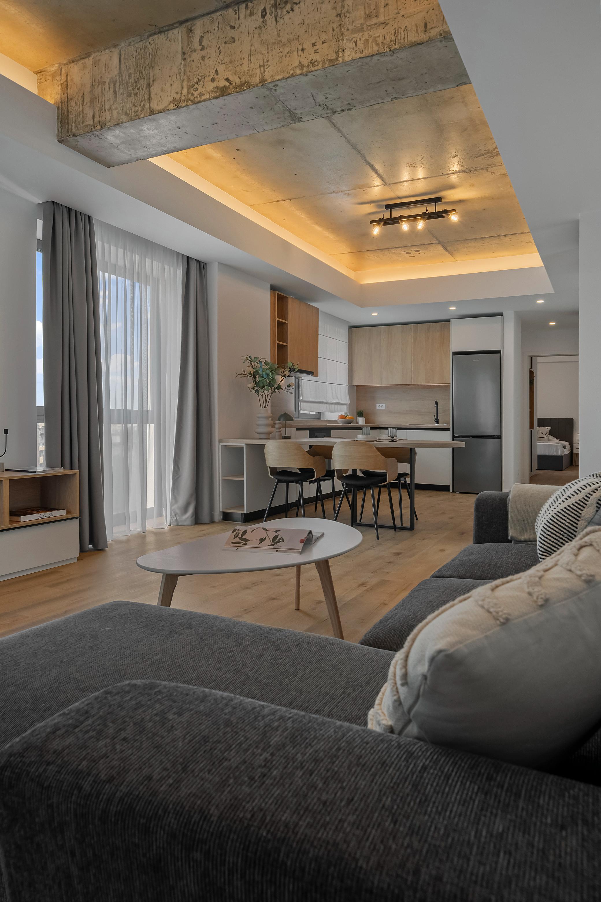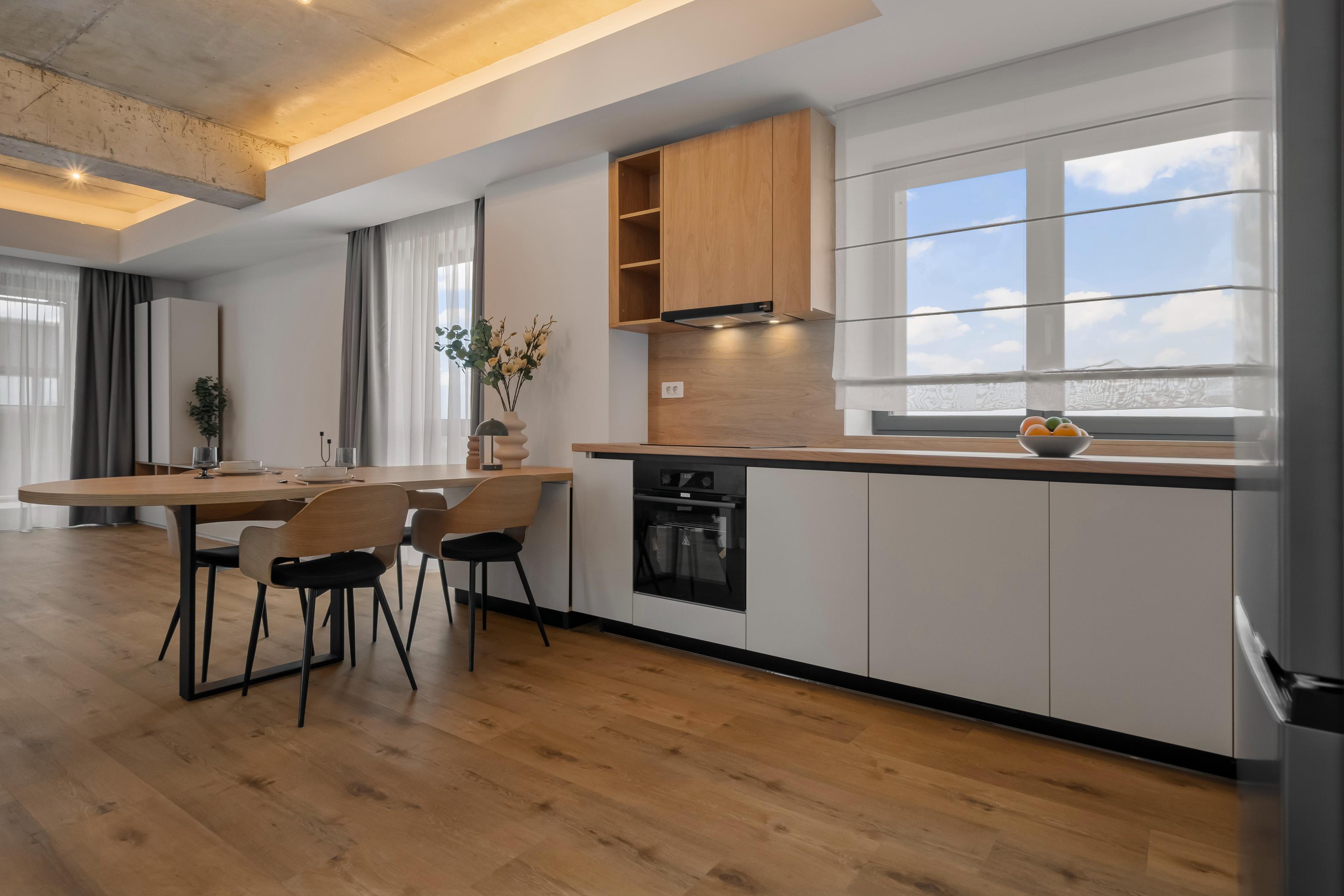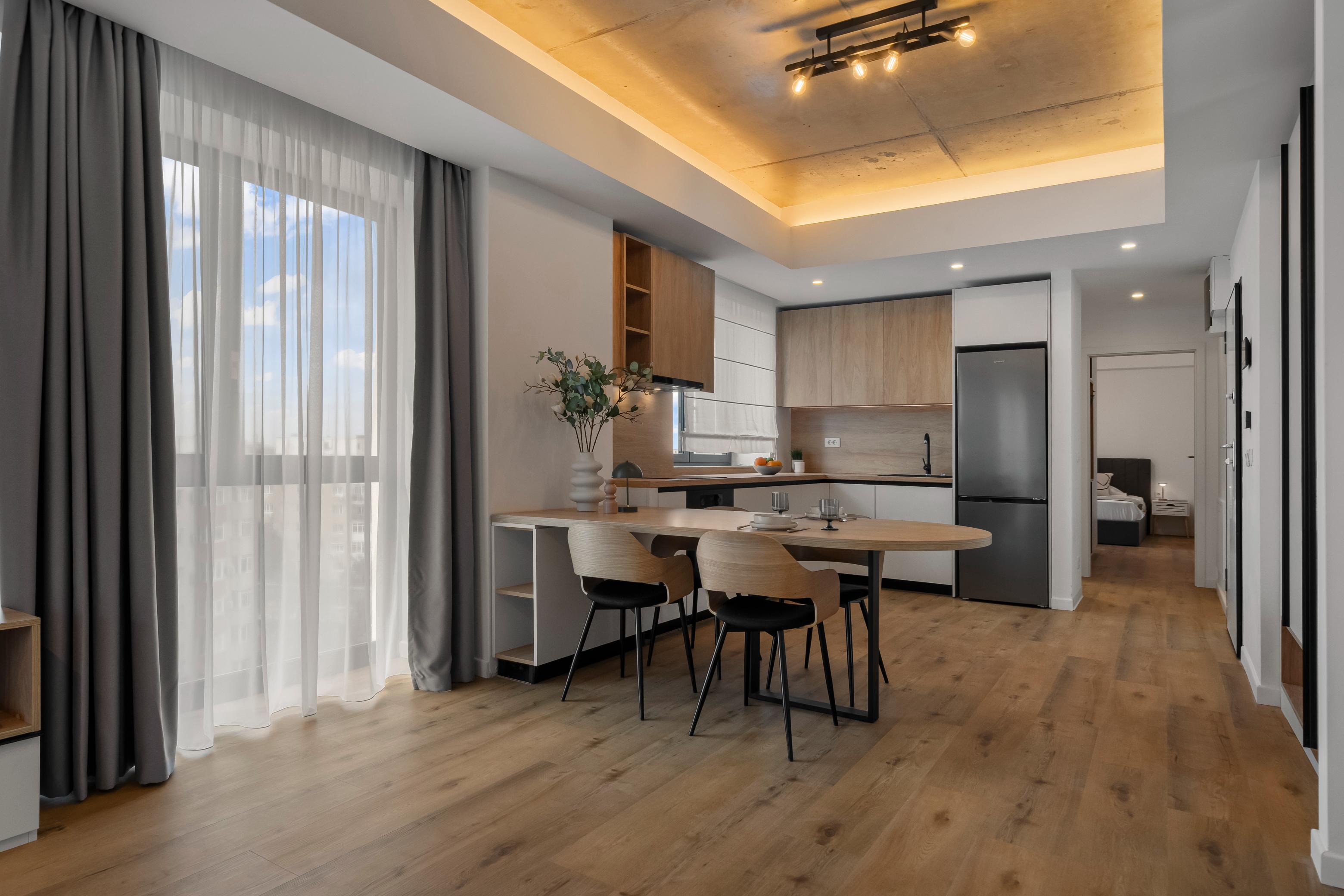 Living, dormitor, baie, bucătărie deschisăSuprafață utilă 57 mp + balcon
